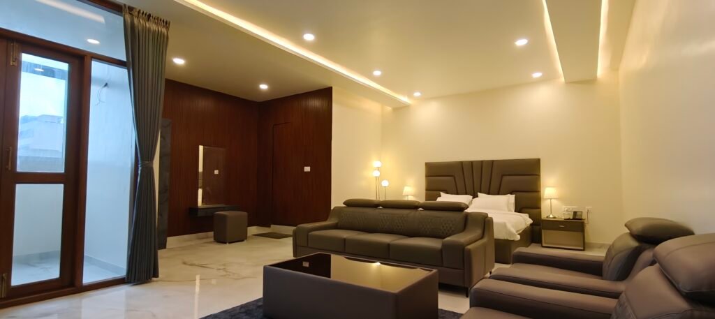 Enjoy 24/7 room service, a fully equipped fitness center, and on-site dining. We also provide private parking, power backup, and relaxing lounges for your convenience. Experience the best in comfort and convenience during your stay with us!